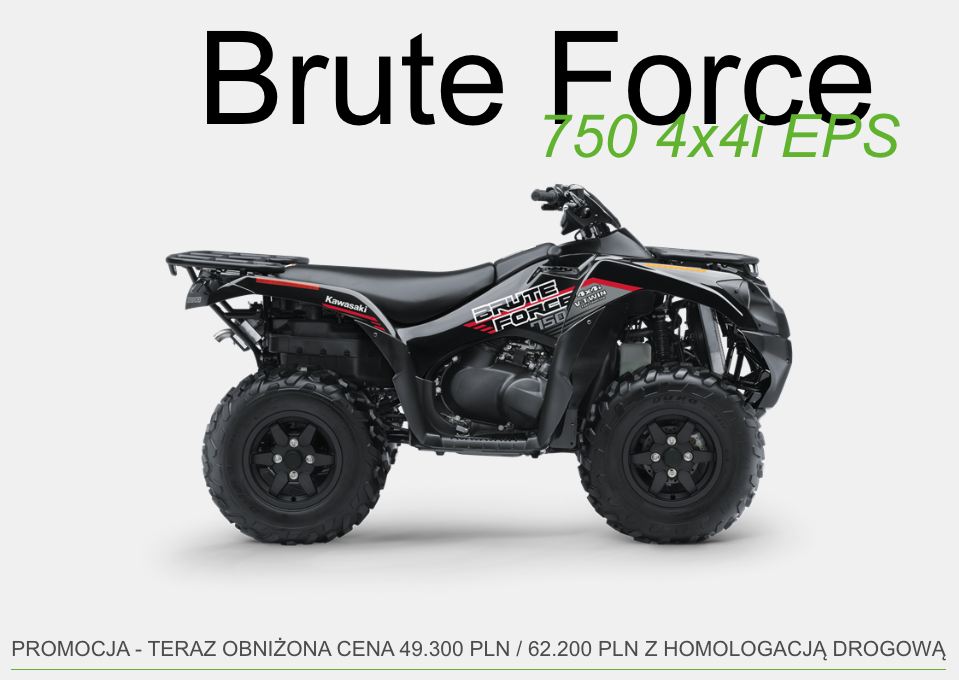 Zapraszamy do skorzystania z wyjątkowej oferty wyprzedażowej na pojazdy ATV Kawasaki Bruteforce 750 4x4 EPS, dostępnego również z homologacją!